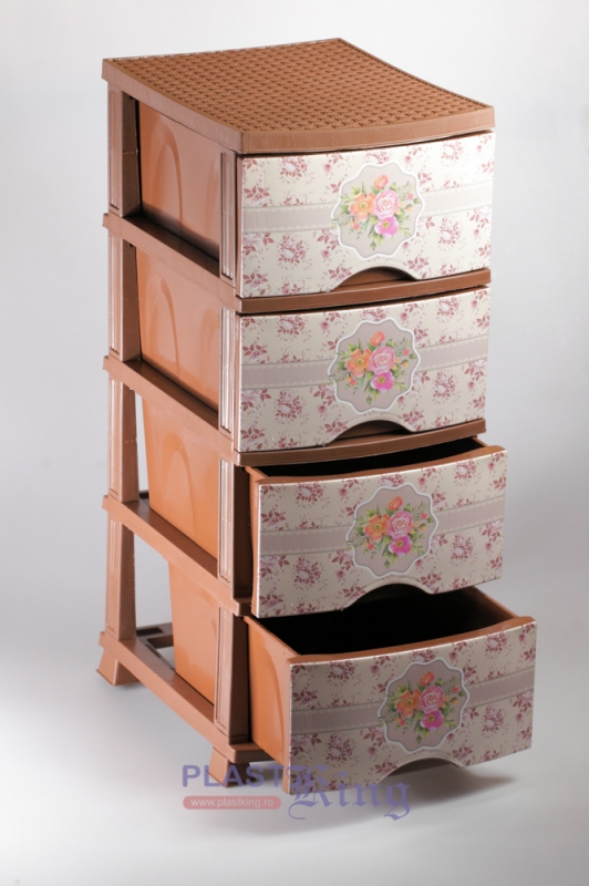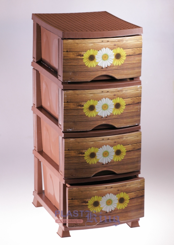 Dulap din plastic cu sertare de inalta calitate, model floral desenat. Se va potrivi perfect in interiorul baii, livingului, bucatariei sau camerei copiilor.